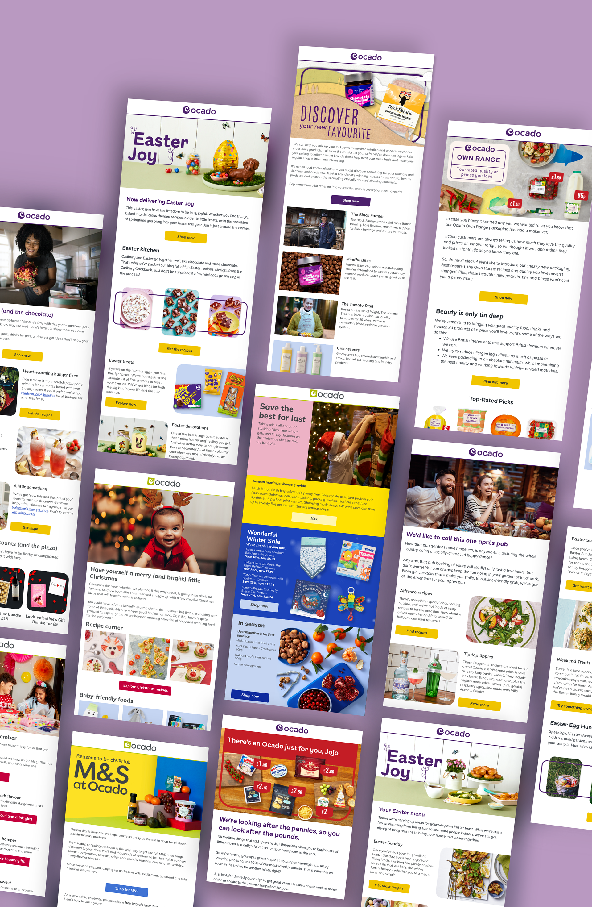 With Ocado emails we all work together to bring a little joy to the customer's inbox, be it through new small suppliers to try out, or new ingredients and recipes. Our email work is dynamically tailored to our customers so I can design emails for meat eaters, vegetarians, and everyone in between.